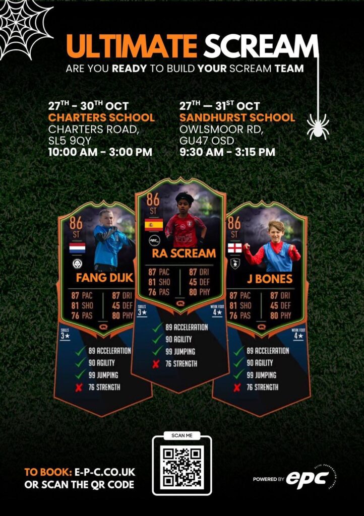 EPC, providers of our after school football club here at Oaklands Junior School, have asked us to share the following information with you regarding their October half-term camp – Ultimate Scream!